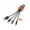 Le câble 3-in-1 personnalisable avec logo lumineux recto/verso et trois connecteurs (Type C, Micro USB, iPhone) peut charger 2 à 3 produits à la fois. Il est fabriqué dans le respect des normes environnementales : bois certifié FSC pour assurer une gestion durable des forêts et cordons fabriqués en rPET, plastique issu de bouteilles recyclées. Tout est inclus : personnalisation recto/verso et pochette biodégradable avec cartonnette en papier recyclé. Les plus éco du produit : le bambou certifié FSC, les cordons en rPET (bouteille recyclée), un packaging en TPU biodégradable, une cartonnette en papier kraft recyclé et un marquage en France.