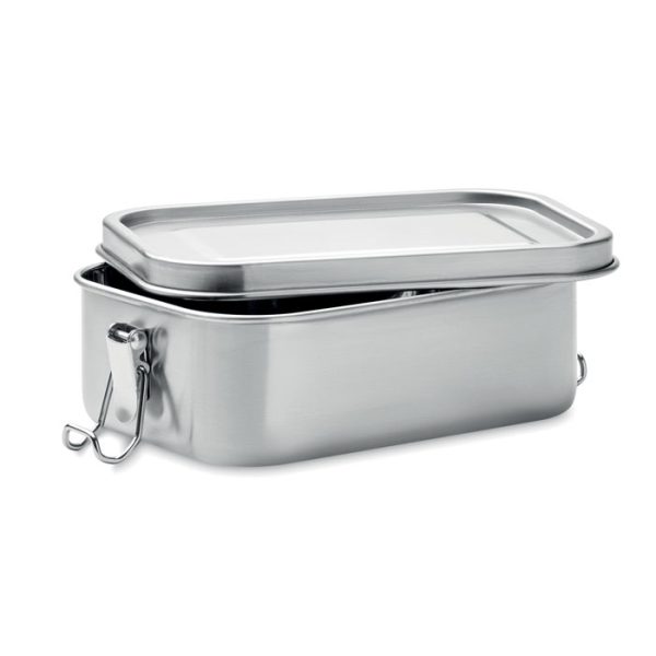 Lunch box en acier inoxydable avec de solides boucles latérales assurant une parfaite fermeture. Pratique pour emmener votre déjeuner avec vous au travail ou à l’extérieur.